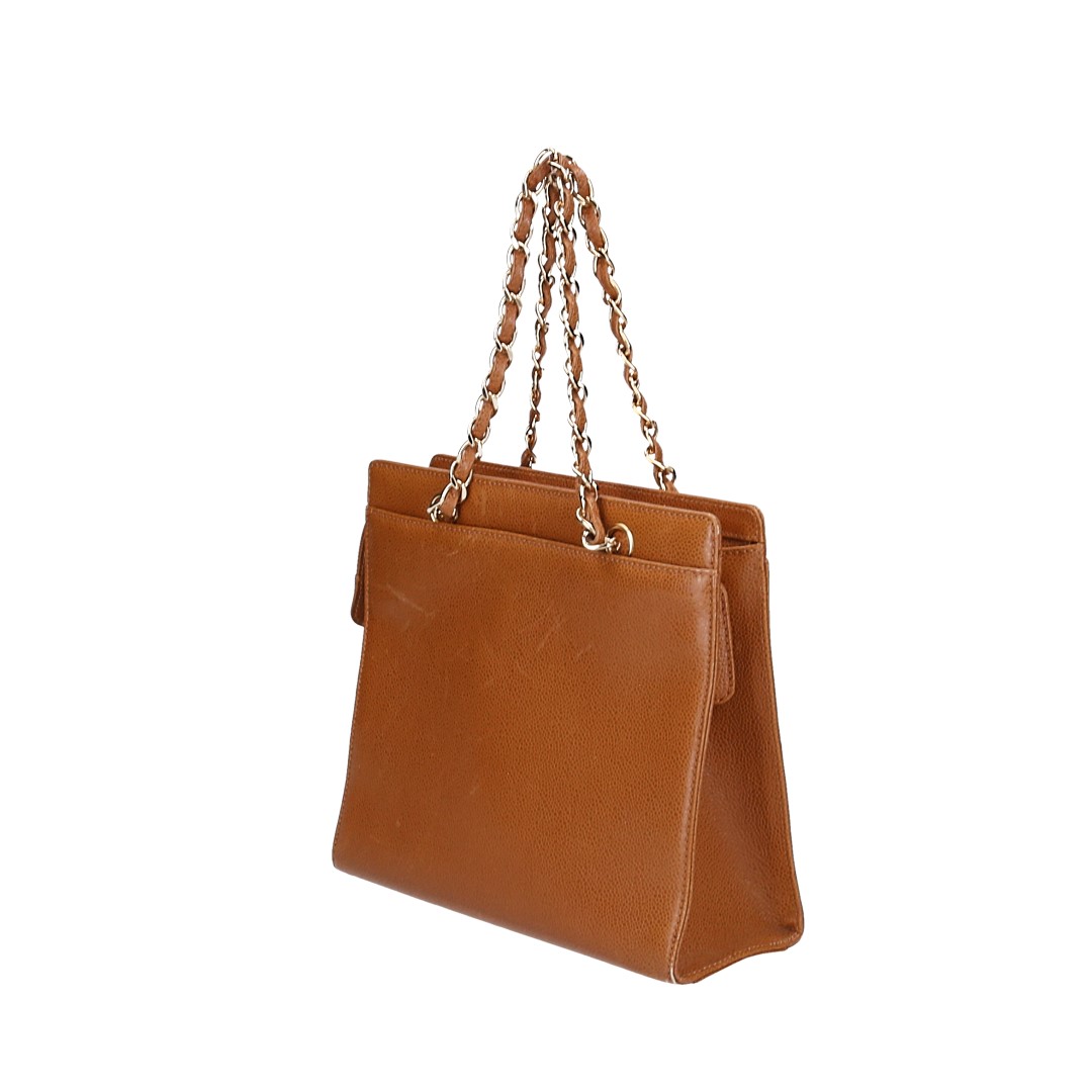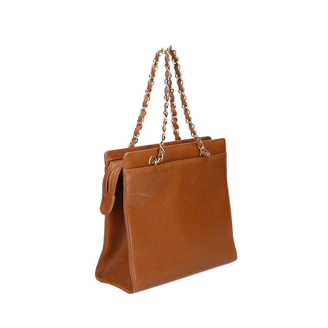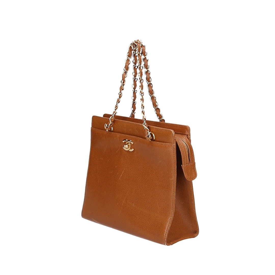 CHANEL HANDTASCHE GENARBTE KALBSLEDER IN CARAMEL BRAUN MIT GHW