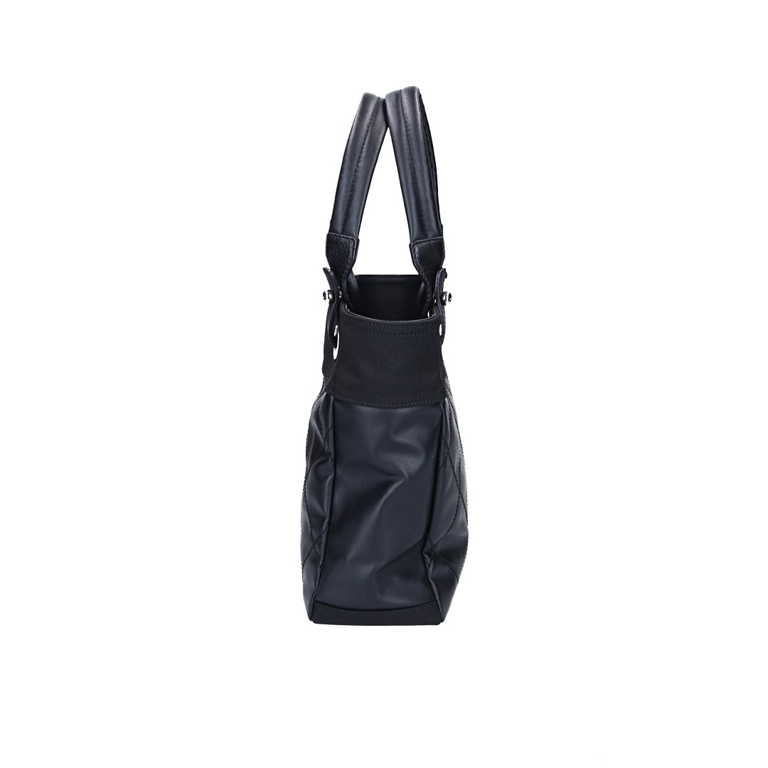 beschichtetes Textil, genarbtes Leder; silberfarbenes Metall; Textil