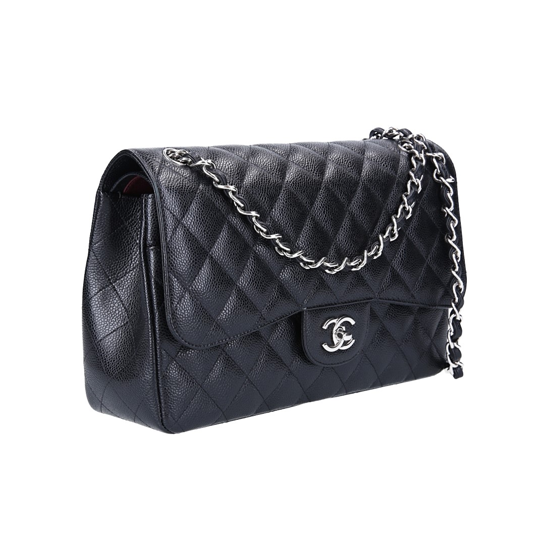 CHANEL TIMELESS FLAP HANDTASCHE (JUMBO) AUS KALBSLEDER IN SCHWARZ MIT SHW (A58600)