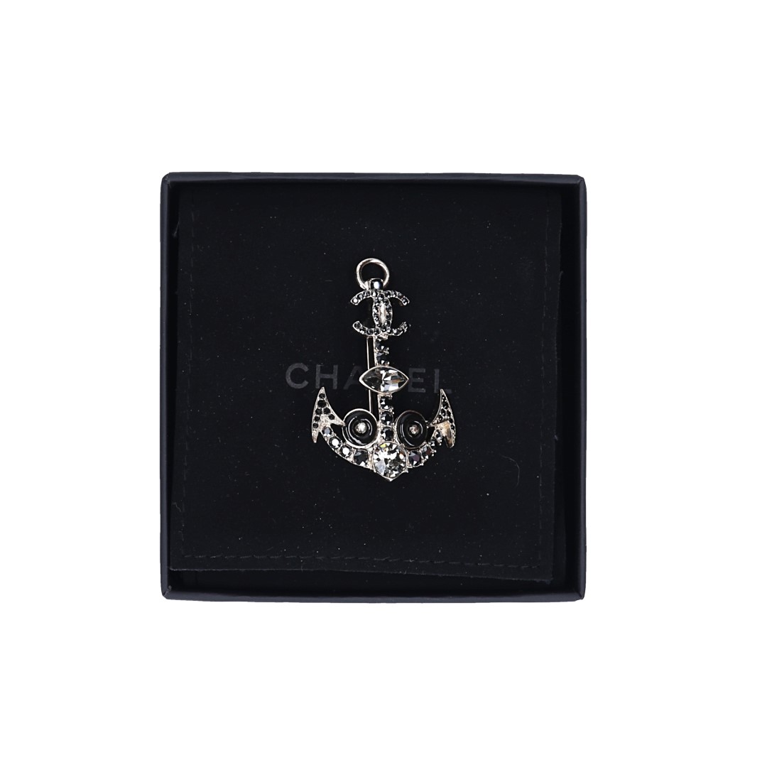 Die Brosche ist mit Strass verziert.