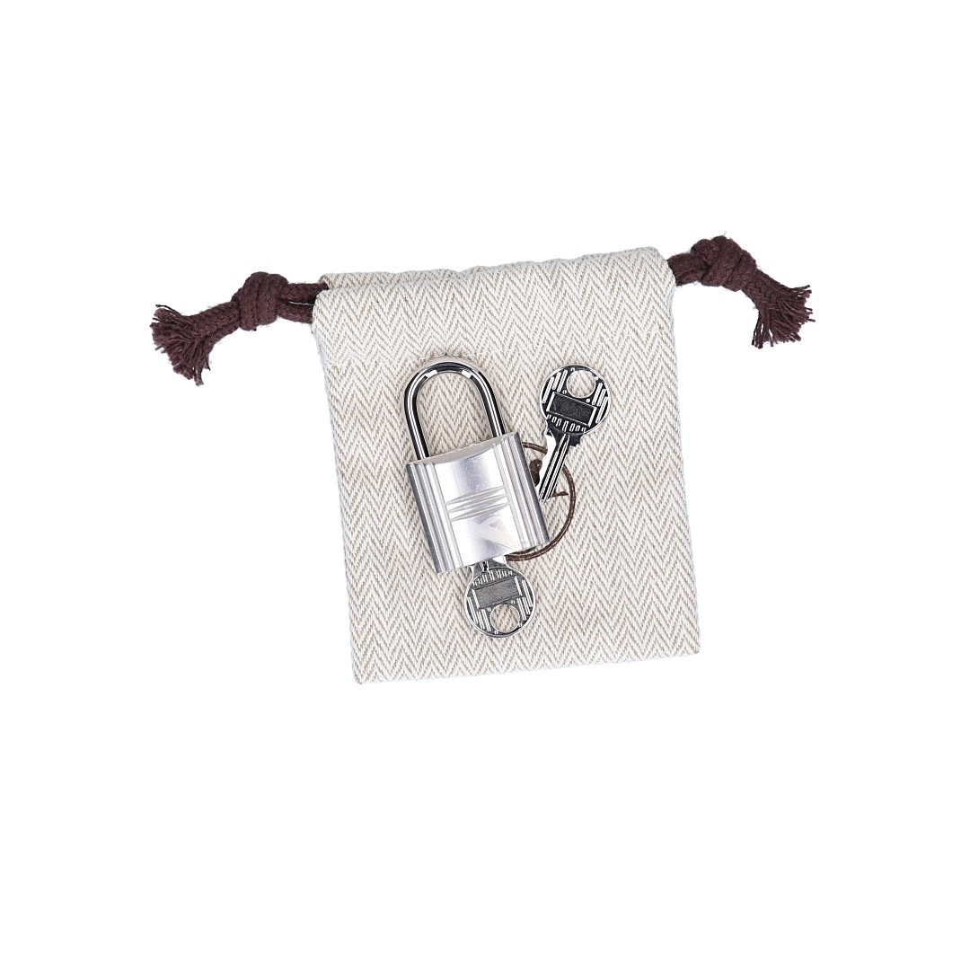 Das Set aus einem Schloss mit zwei zugehörigen Schlüssel ist passend für zahlreiche Hermès Modelle. Verwendung findet das Schloss als Verschluss oder Dekorationselement.
