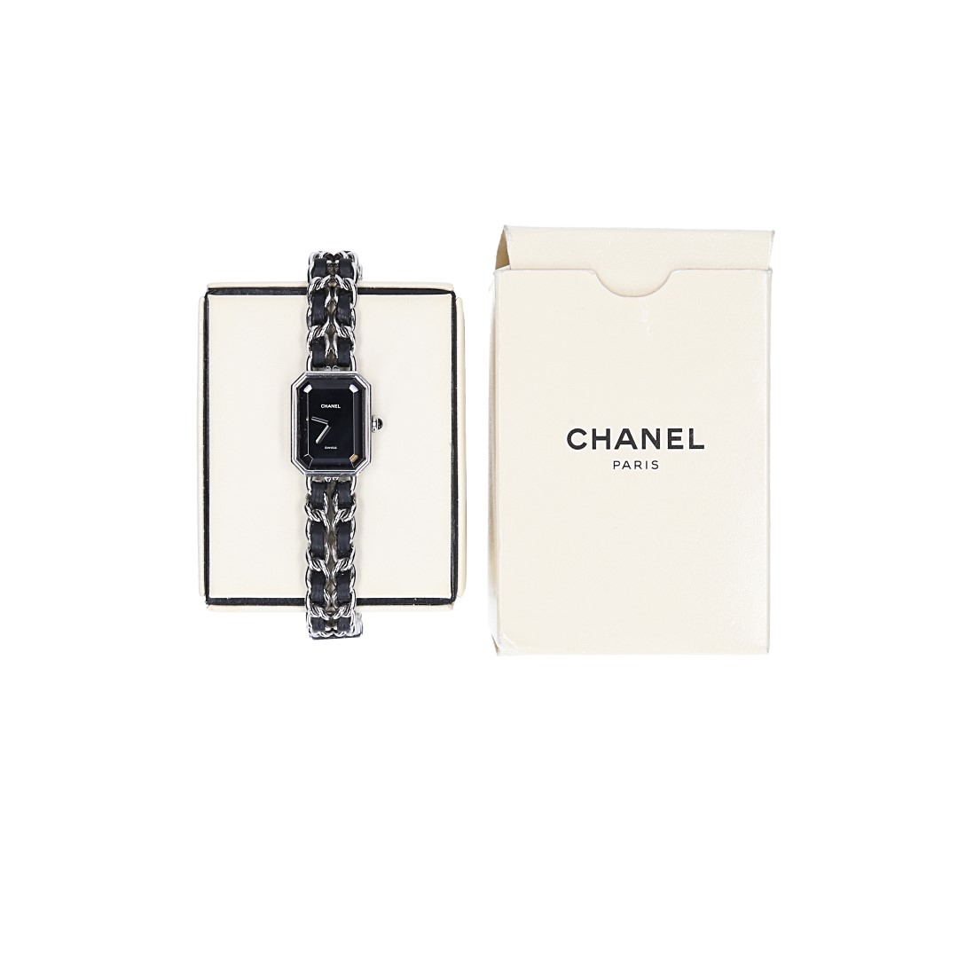 CHANEL ARMBAND-UHR 'PREMIÈRE' AUS EDELSTAHL UND LEDER IN SCHWARZ