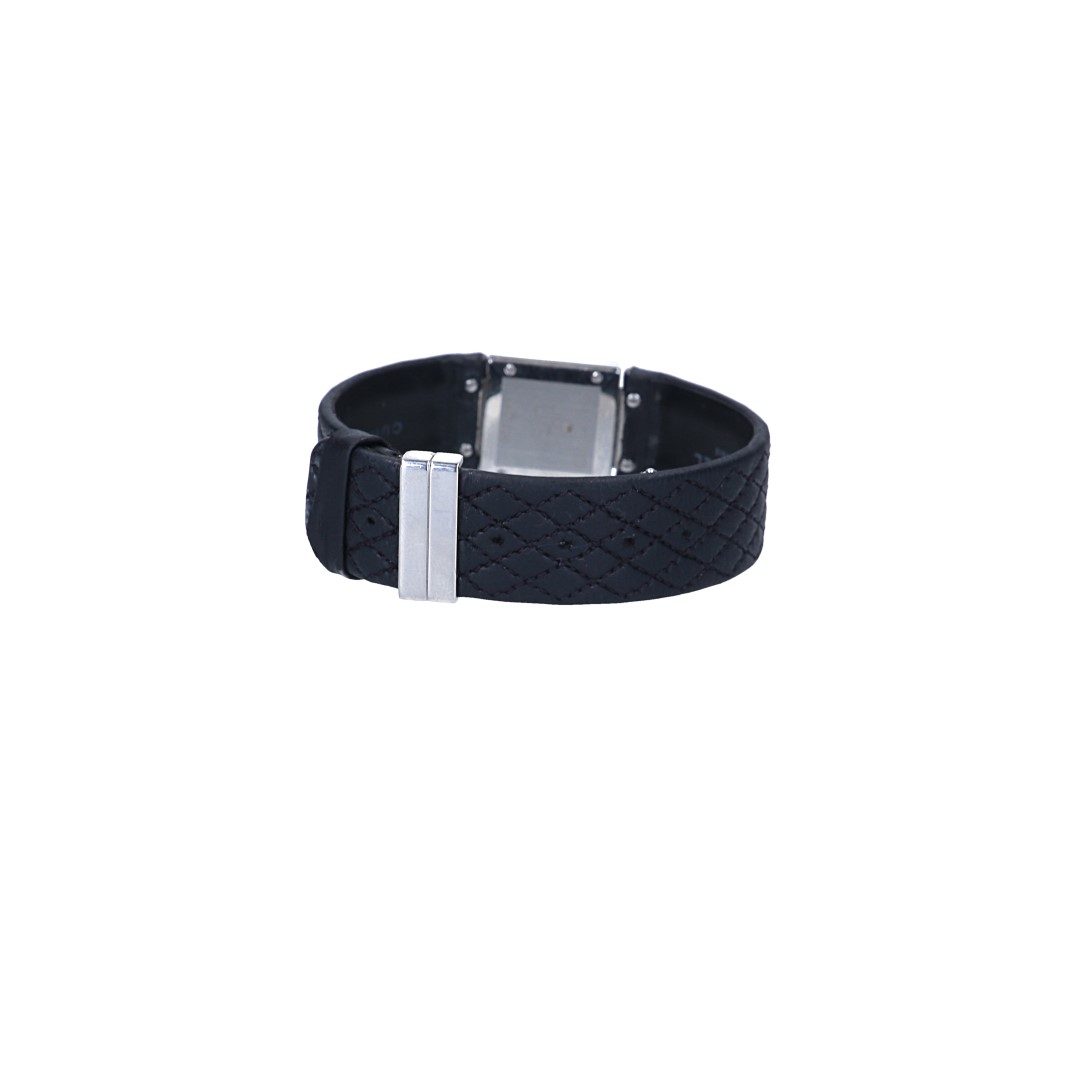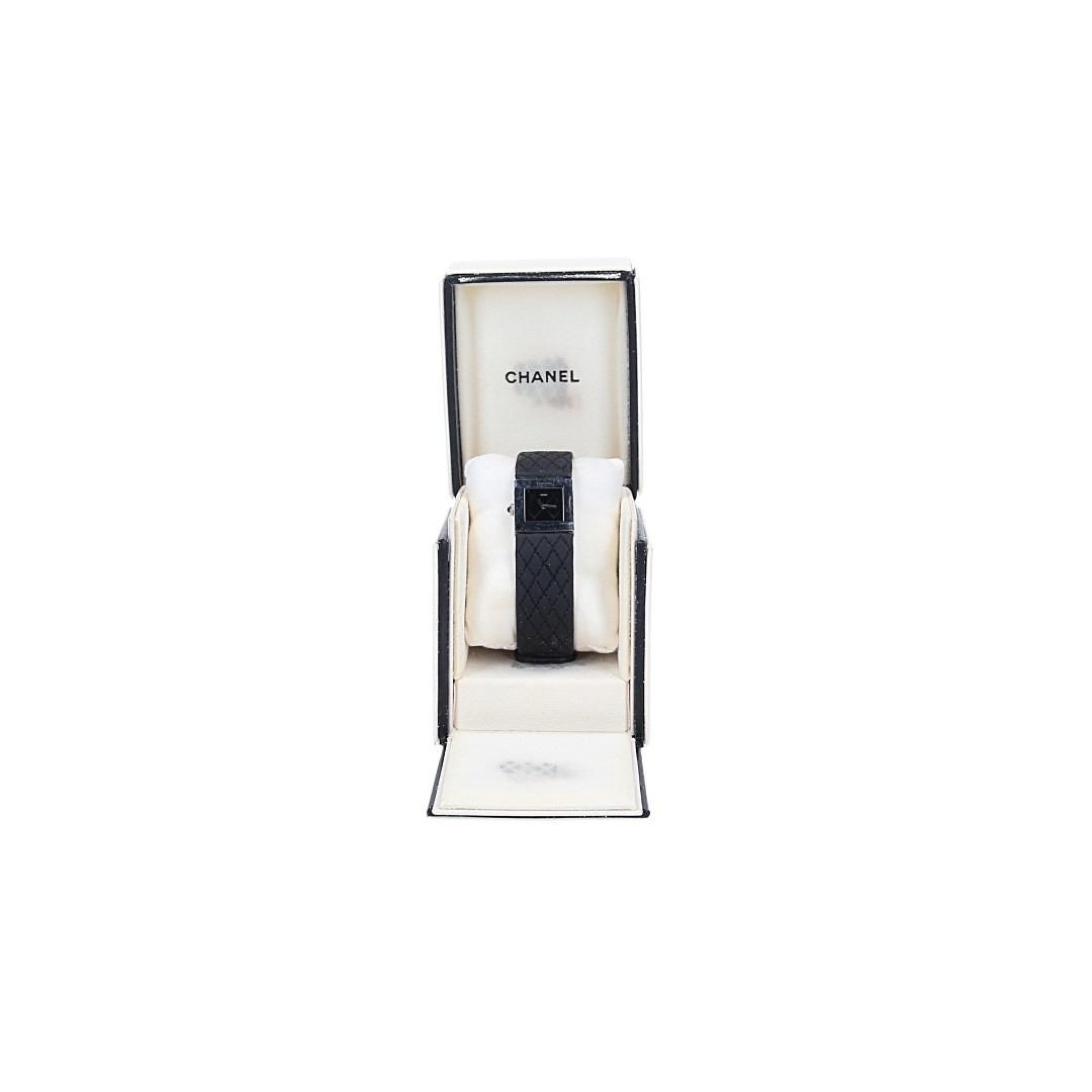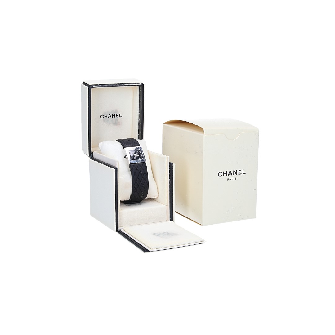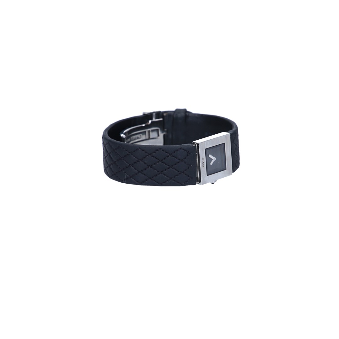 CHANEL ARMBAND-UHR 'MATELASSÉ' AUS EDEL-STAHL UND LEDER IN SCHWARZ
