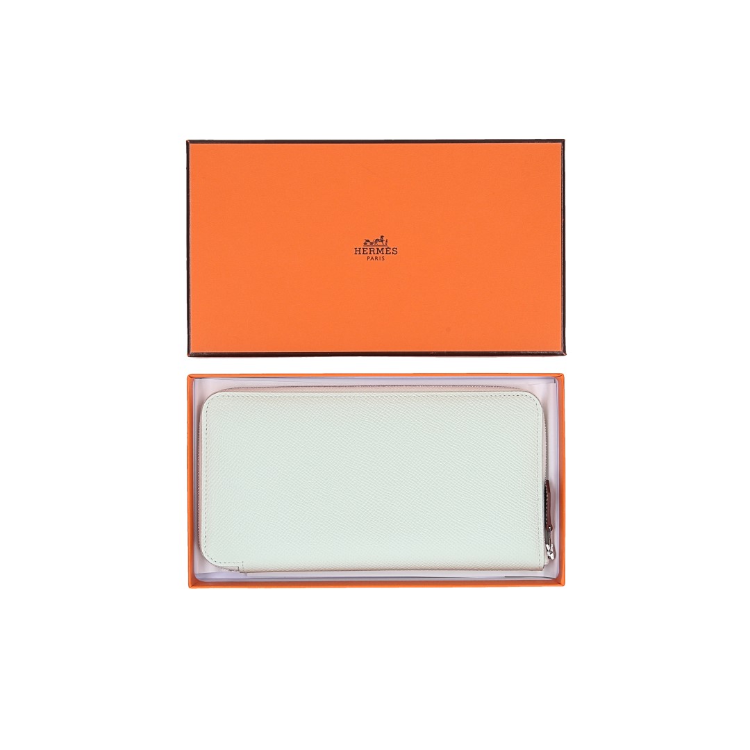 Produktinformationen "HERMÈS BRIEFTASCHE SILK'IN CLASSIQUE AUS EPSOM-KALBSLEDER & BARÉNIA-KALBSLEDER IN VERT FIZZ MIT PHW"
