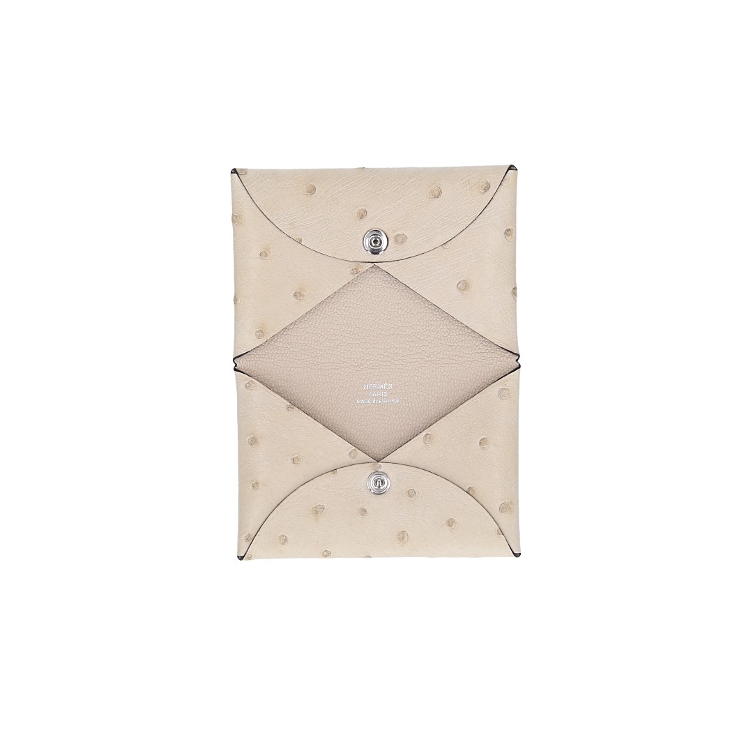 HERMÈS KARTENETUI 'CALVI' AUS STRAUßEN-LEDER IN PARCHEMIN MIT PHW