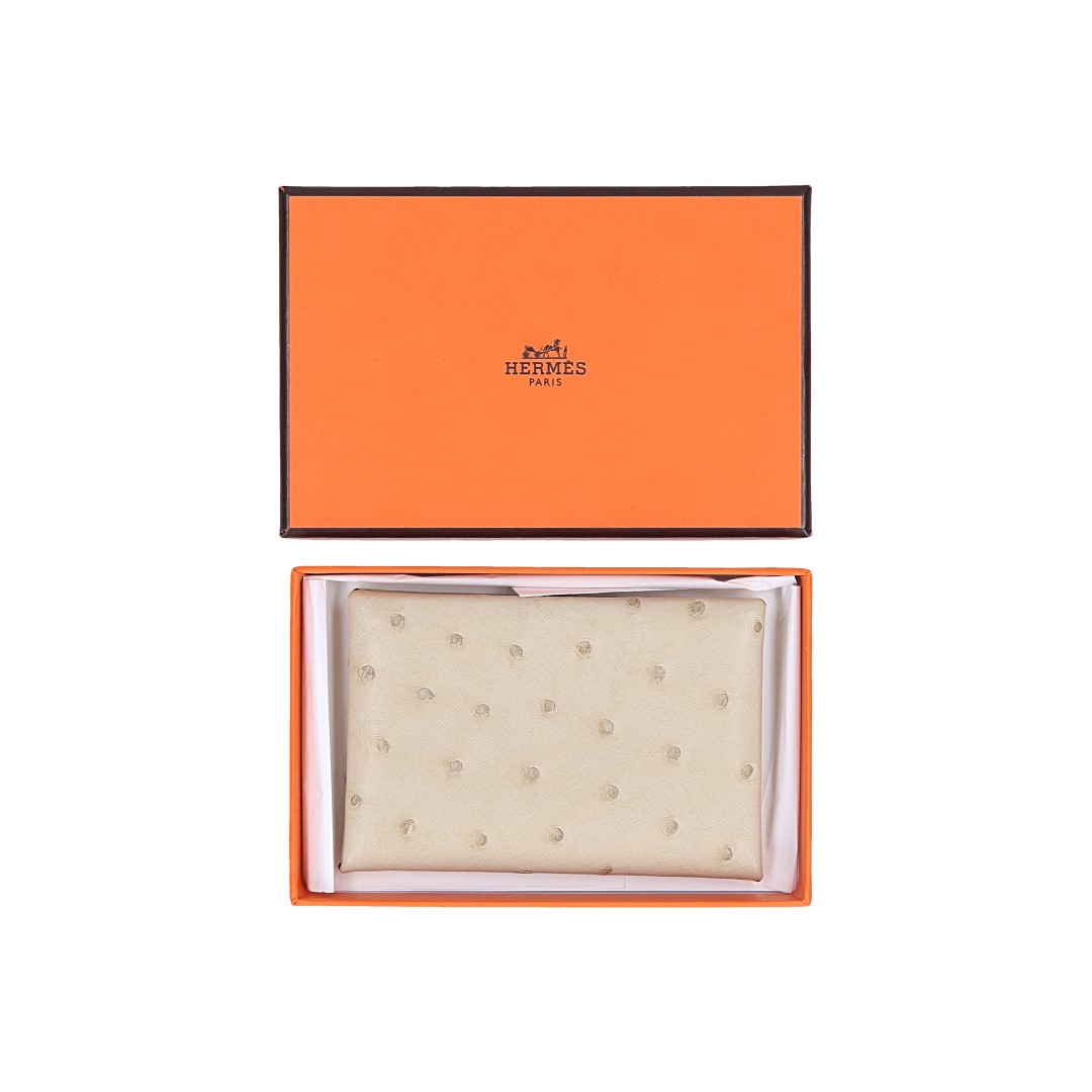 Produktinformationen "HERMÈS KARTENETUI 'CALVI' AUS STRAUßEN-LEDER IN PARCHEMIN MIT PHW"
