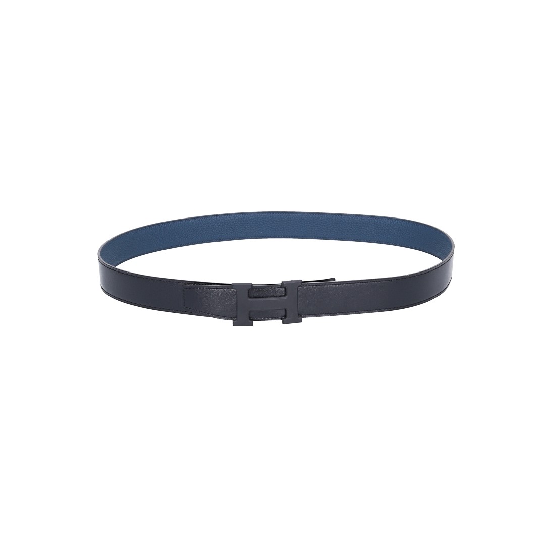 HERMÈS GÜRTELSCHLIEßE H NOIR & WENDBARER LEDERRIEMEN 32 MM AUS BOX-/TOGO KALBSLEDER IN NOIR /BLEU DE PRUSSE GRÖßE 95