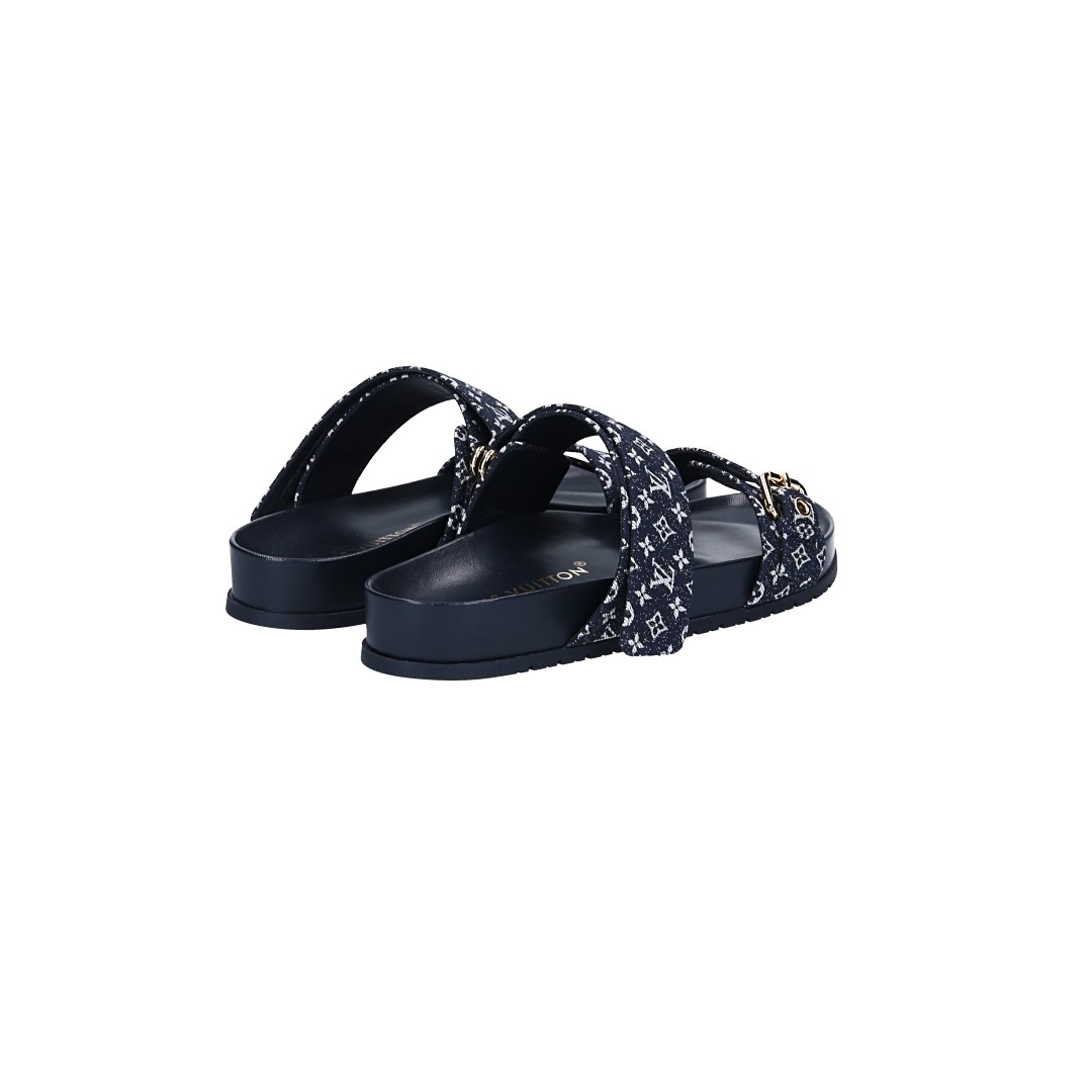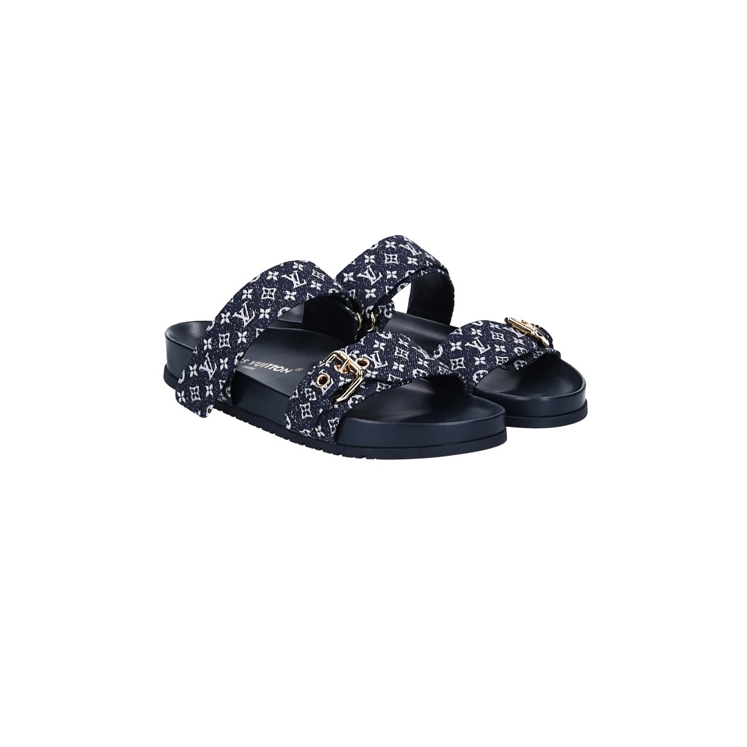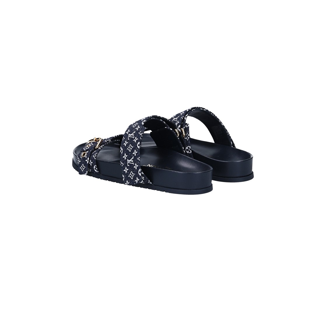 LOUIS VUITTON SANDALE 'BOM DIA COMFORT' AUS JAQUARDGEWEBE IN BLEU FONCÉ GR. 39,5 (1AD1C)