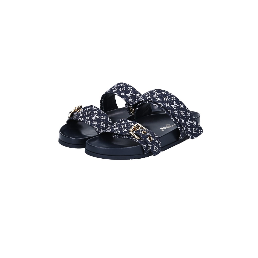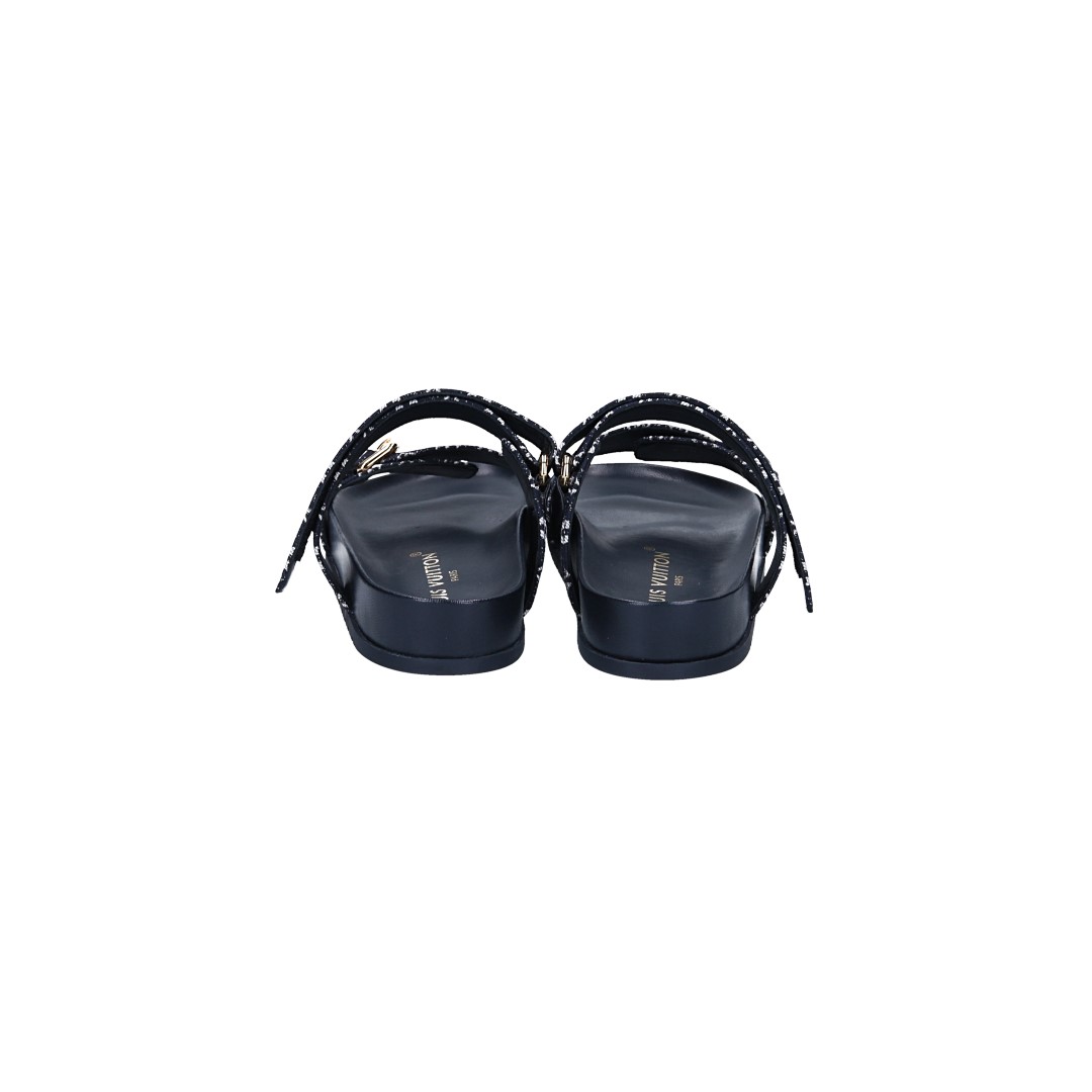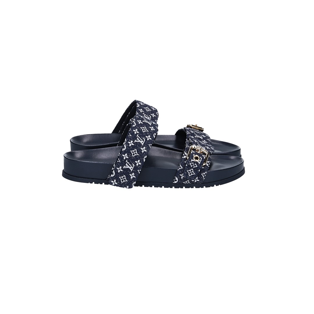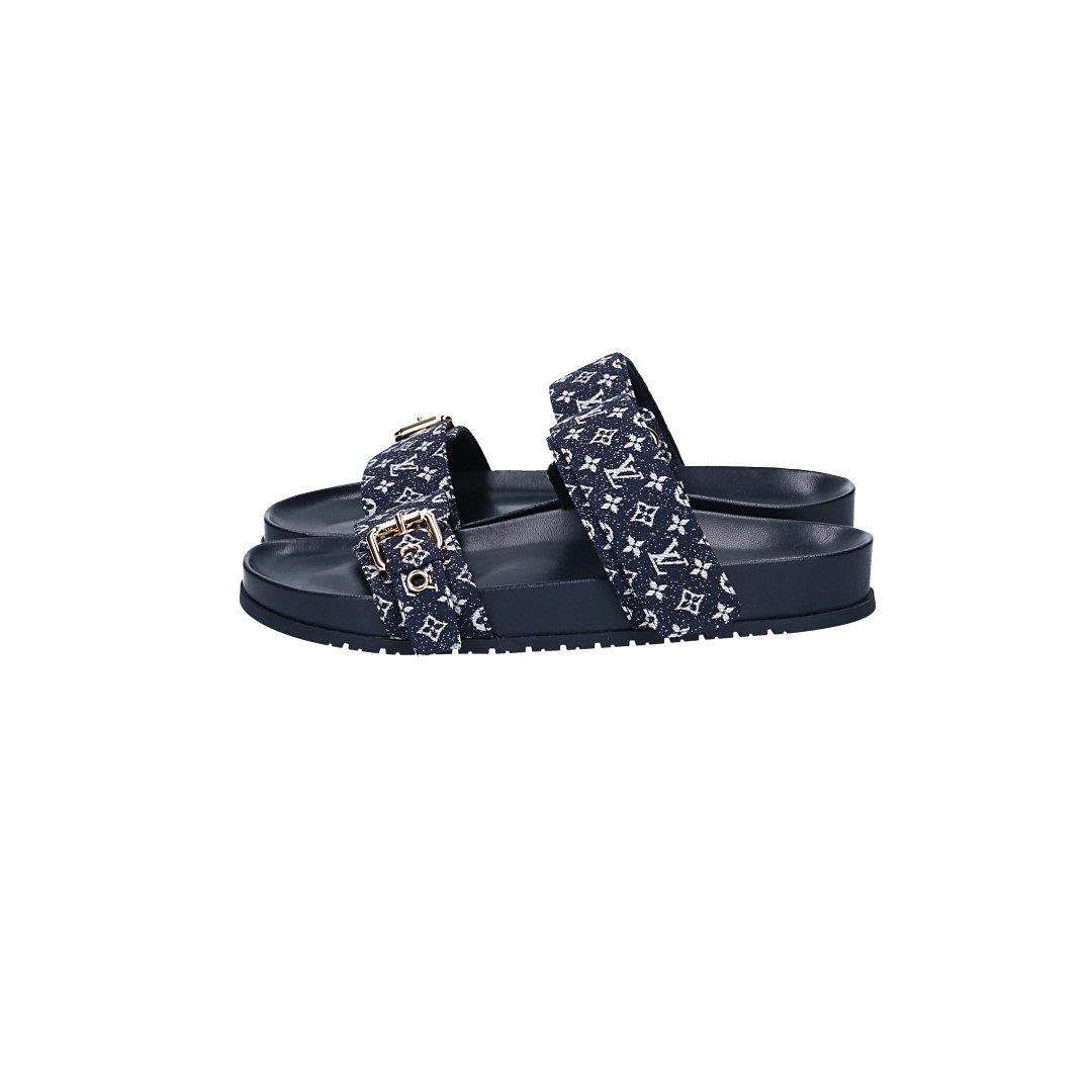LOUIS VUITTON SANDALE 'BOM DIA COMFORT' AUS JAQUARDGEWEBE IN BLEU FONCÉ GR. 39,5 (1AD1C)