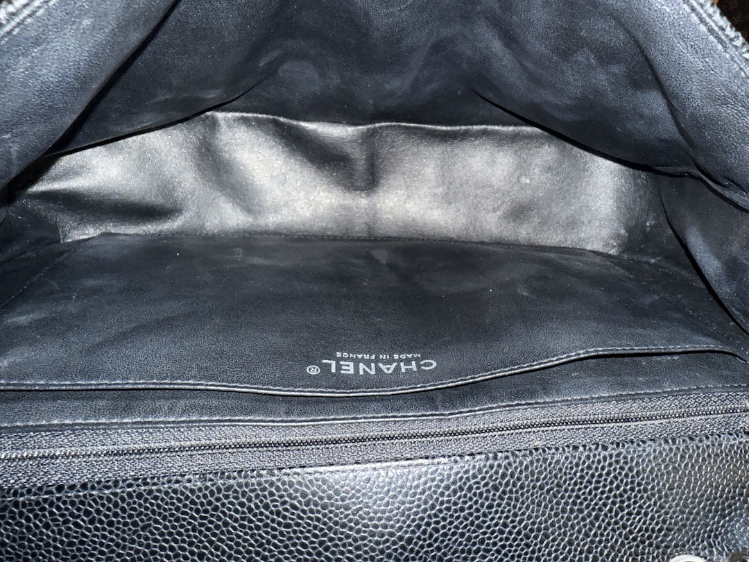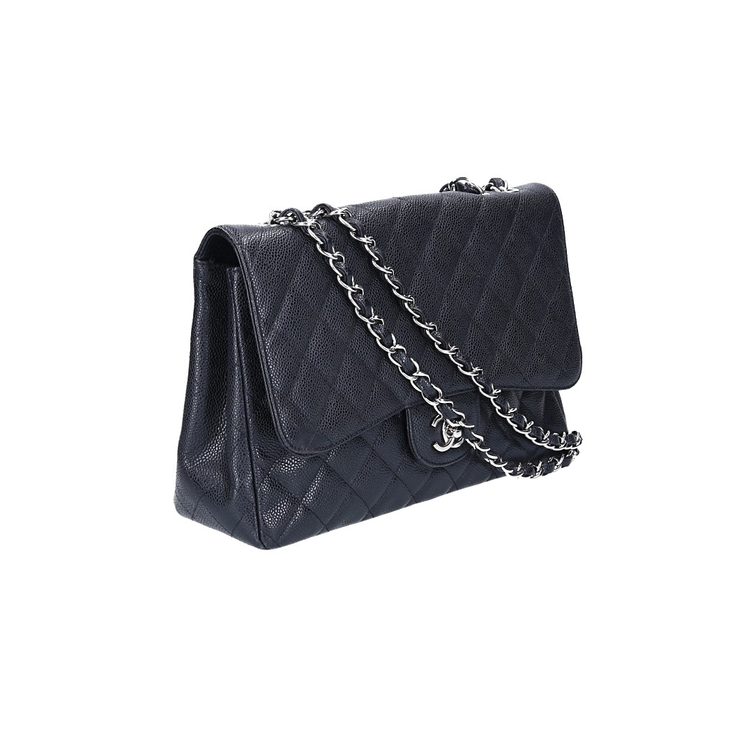 Eigenschaften "CHANEL TIMELESS SINGLE FLAP HANDTASCHE (JUMBO) AUS GENARBTEM KALBSLEDER IN SCHWARZ MIT SHW"