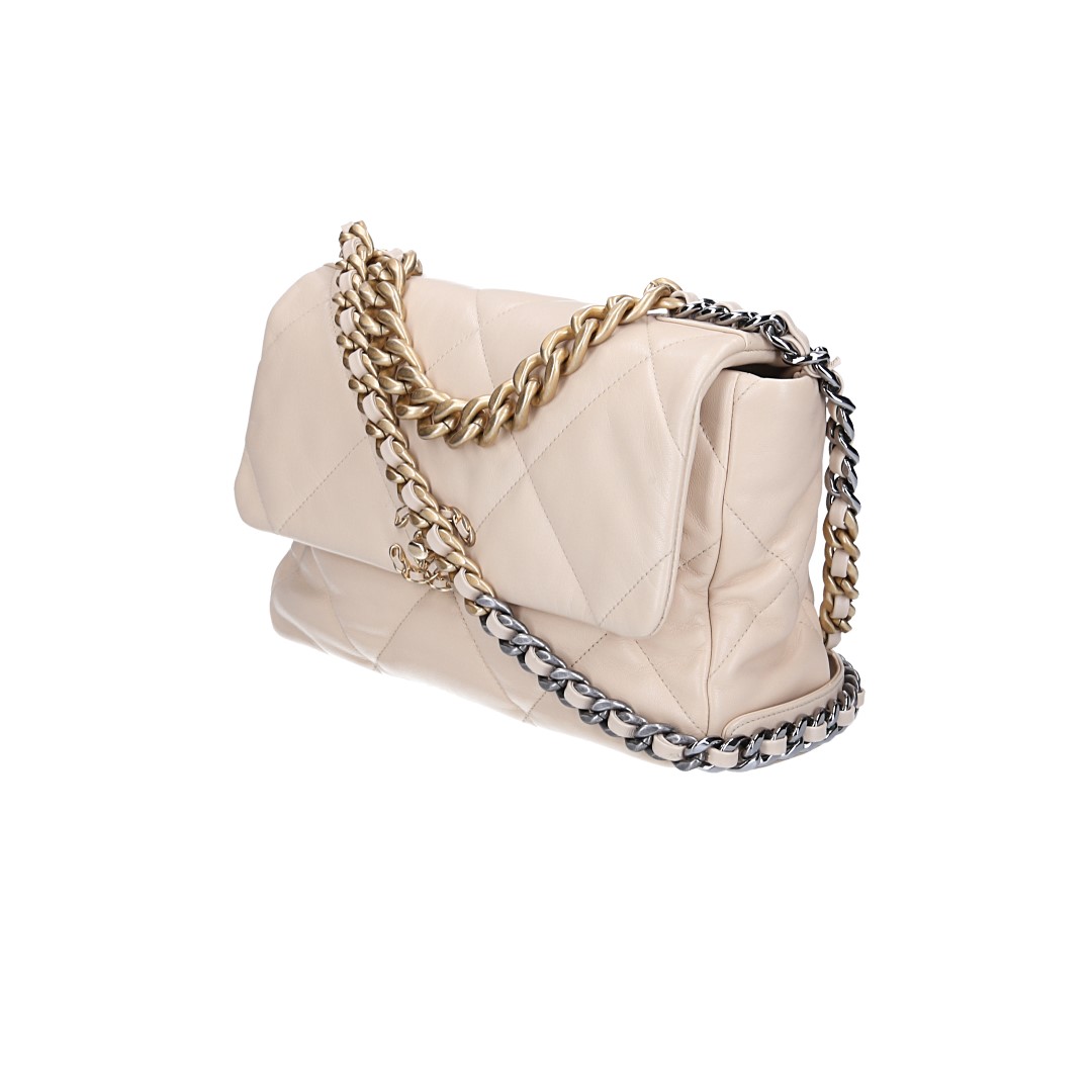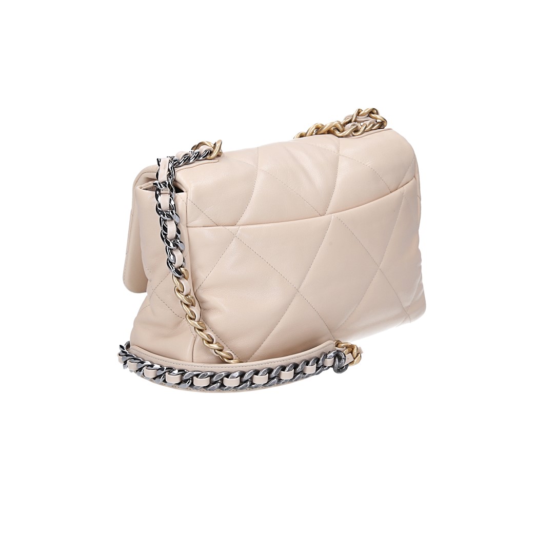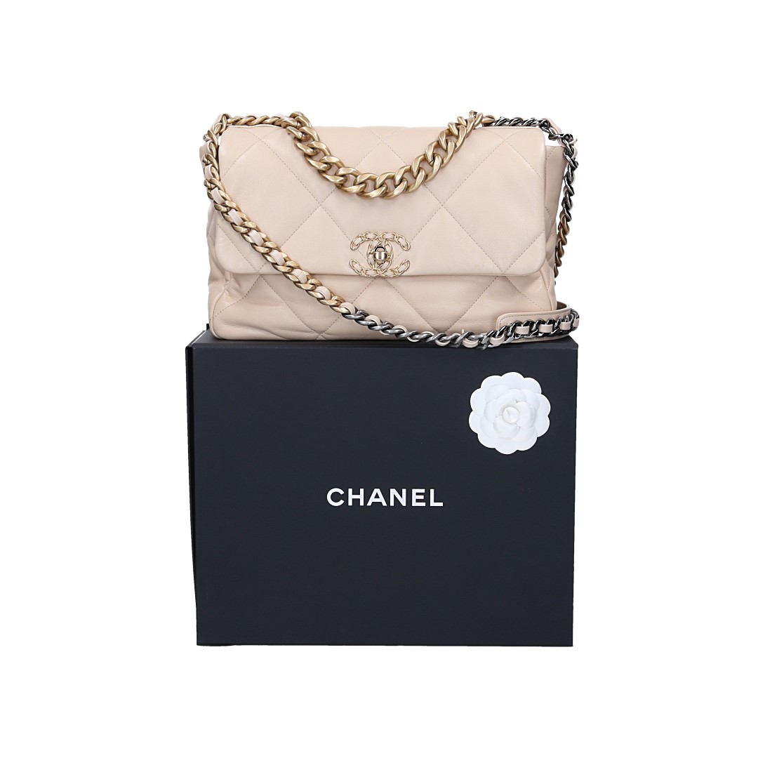 Eigenschaften "CHANEL 19 GROßE PATTENTASCHE HANDTASCHE AUS LAMMLEDER IN BEIGE (AS1161)"