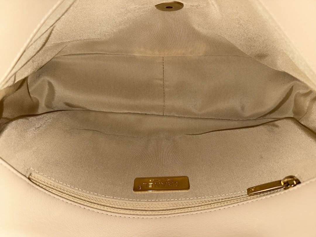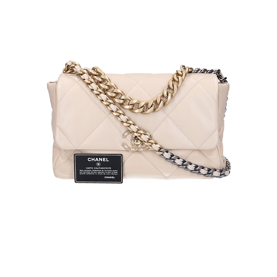 CHANEL 19 GROßE PATTENTASCHE HANDTASCHE AUS LAMMLEDER IN BEIGE (AS1161)