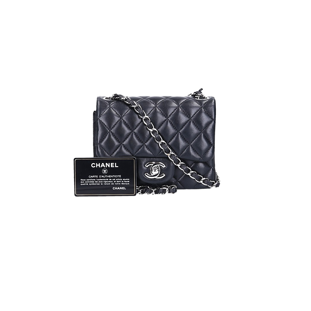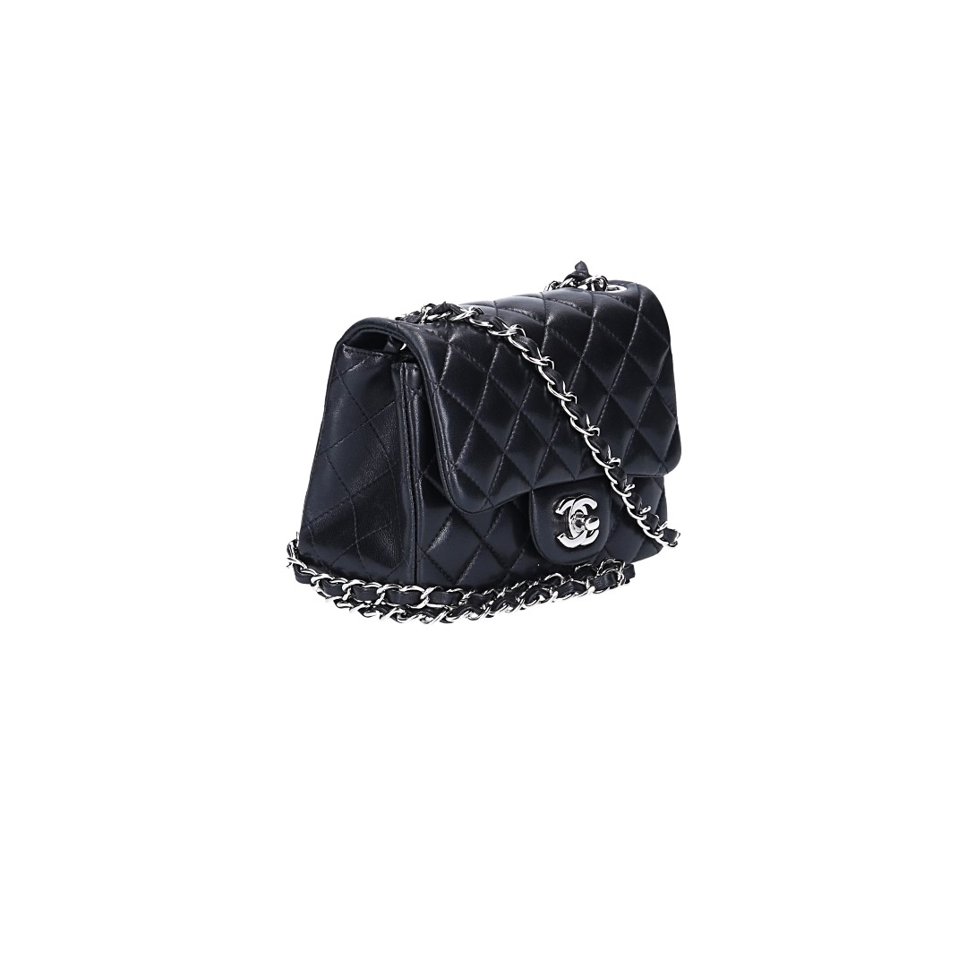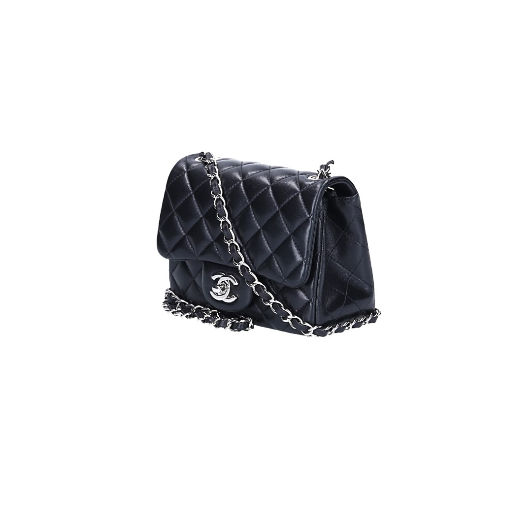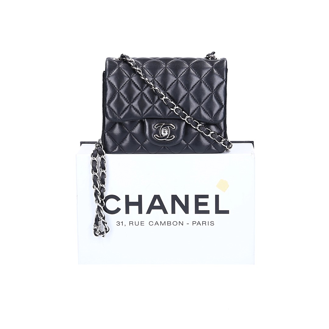 Eigenschaften "CHANEL TIMELESS FLAP HANDTASCHE (MINI SQUARE) AUS LAMMLEDER IN SCHWARZ MIT SHW (A35200)"