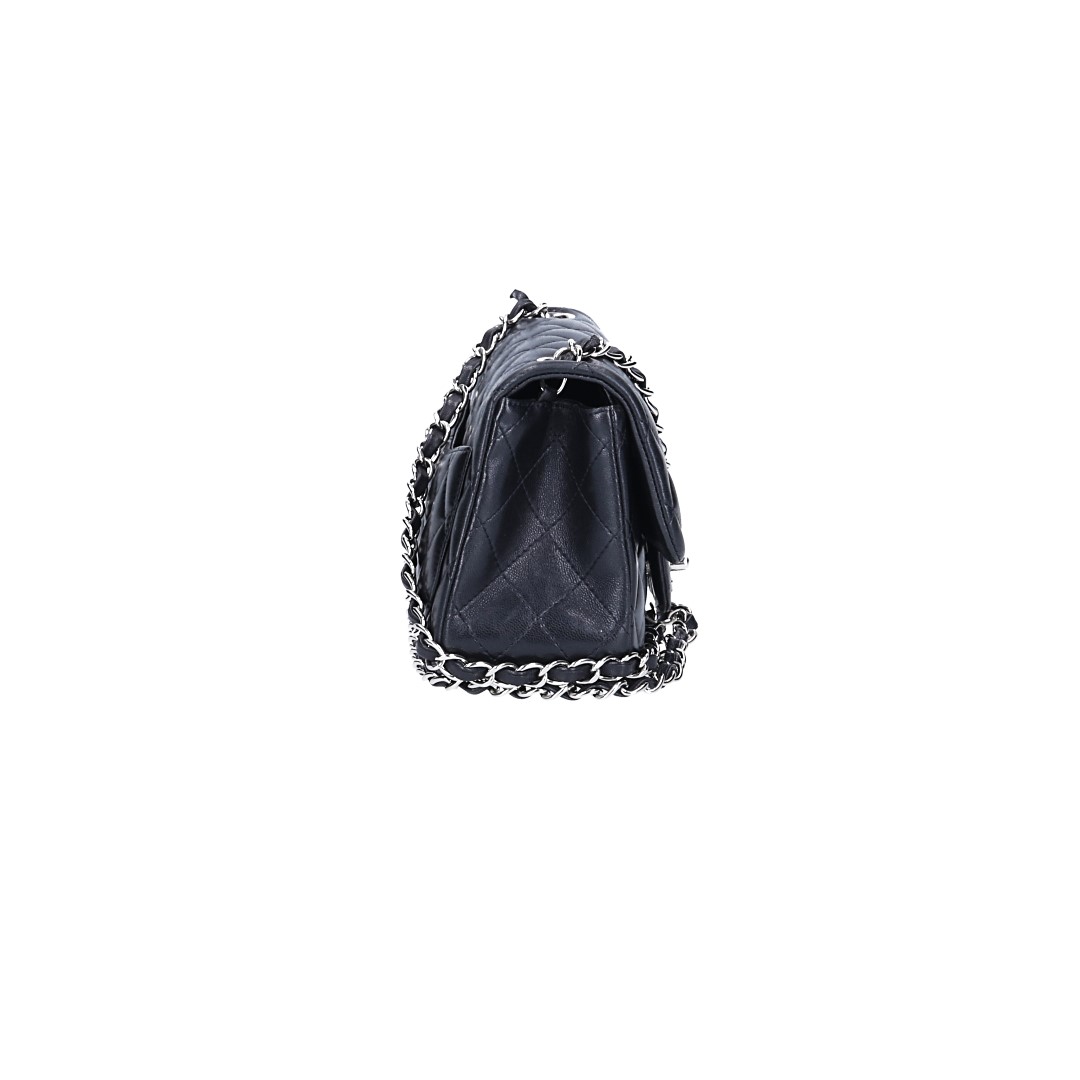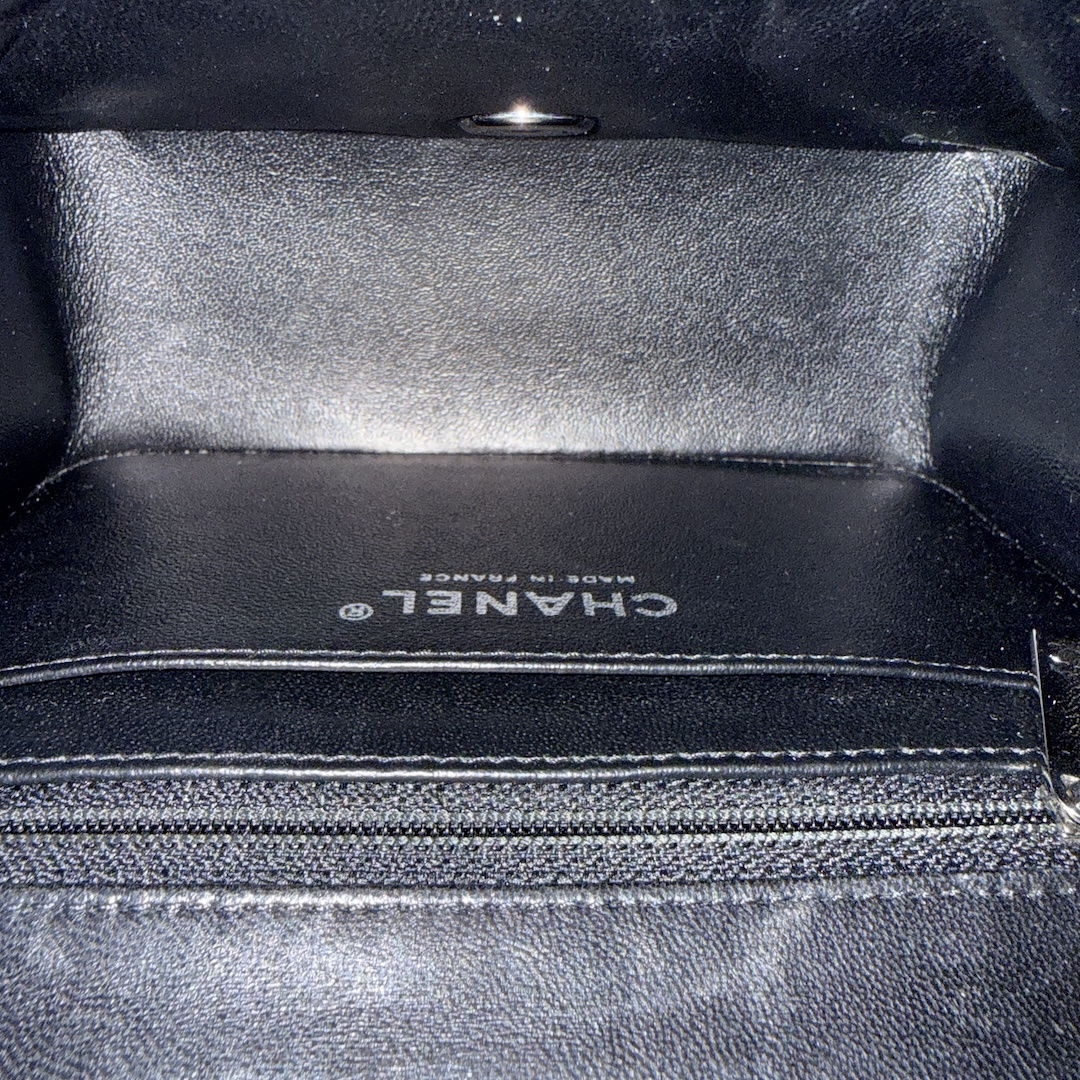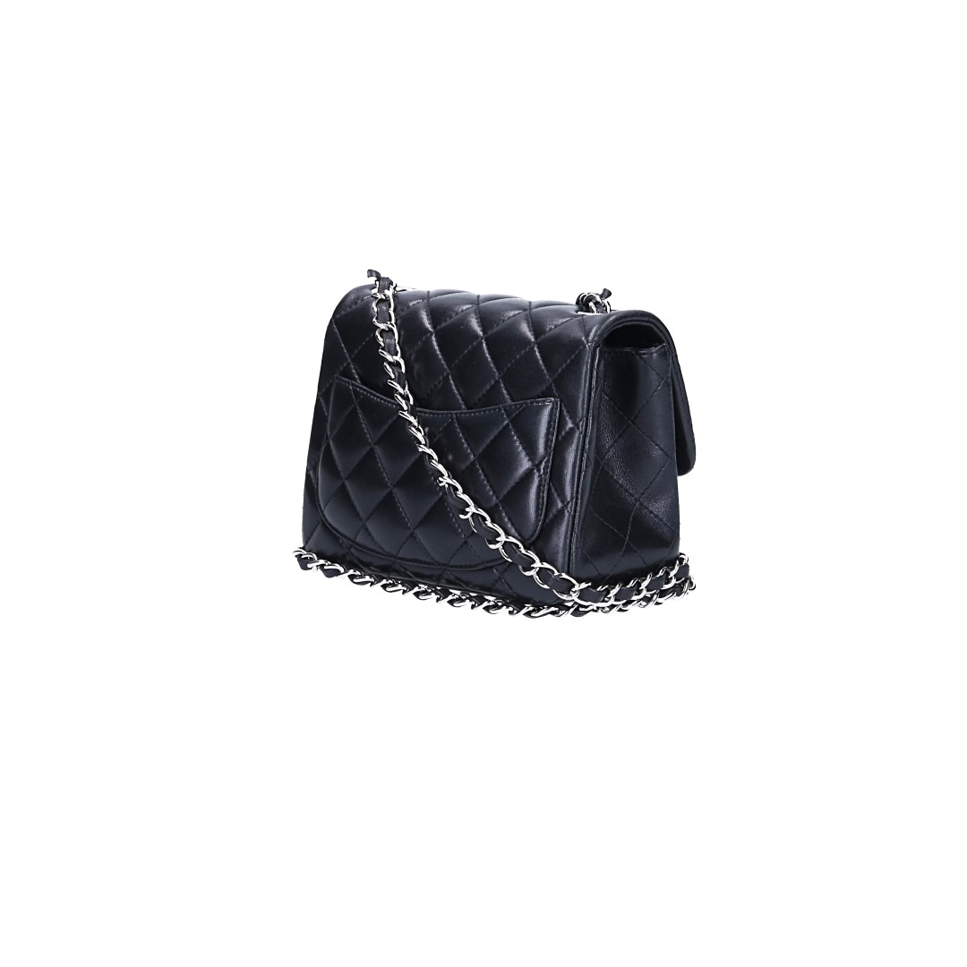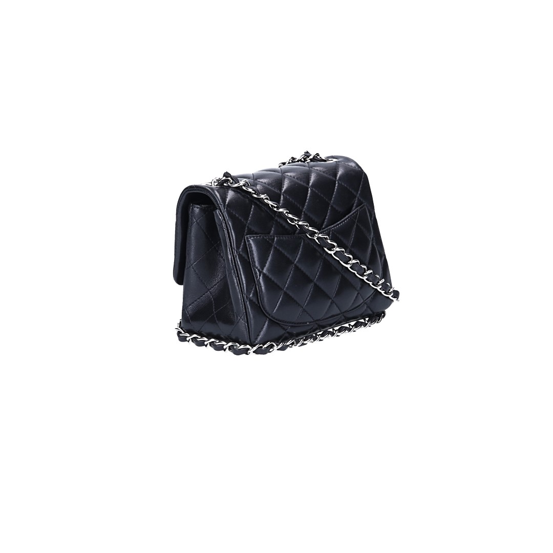 CHANEL TIMELESS FLAP HANDTASCHE (MINI SQUARE) AUS LAMMLEDER IN SCHWARZ MIT SHW (A35200)