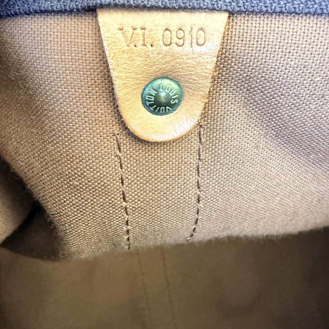 Das Gesamtbild der Louis Vuitton Reisetasche aus zweiter Hand kann als gut bezeichnet werden. Gezeigt ist der explizit zum Verkauf stehende Artikel.