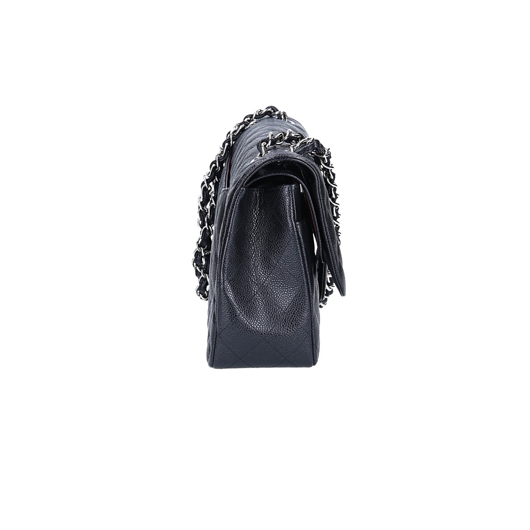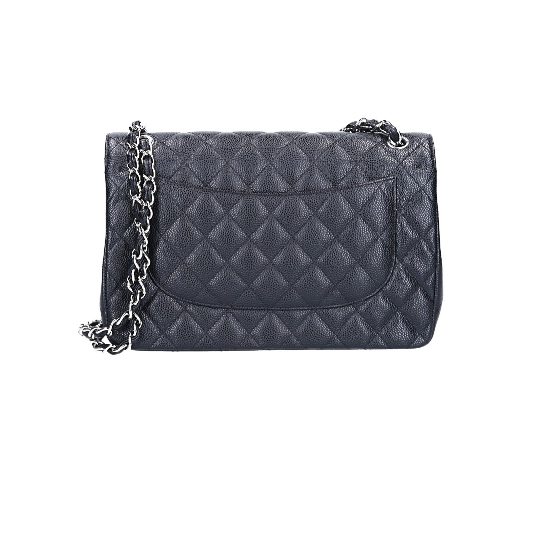 Die hier angebotene Timeless Flap Handtasche in der Größe JUMBO begeistert durch eine klassischen Farb-/Materialkombination und silberfarbenenen Metall-Elementen.
