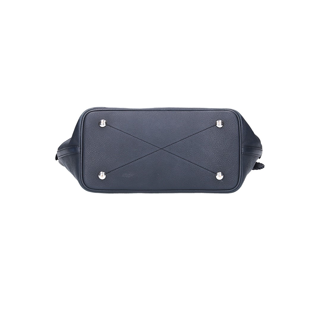 Die Handtasche aus zweiter Hand befindet sich in einem guten Zustand - Abnutzungsspuren sind u.a. an den Ecken des Taschenbodens und an den Henkeln (partiell ist die Versiegelung der Kanten der Henkel abgetragen) zu erkennen. Gezeigt ist der explizit zum Verkauf stehende Artikel.