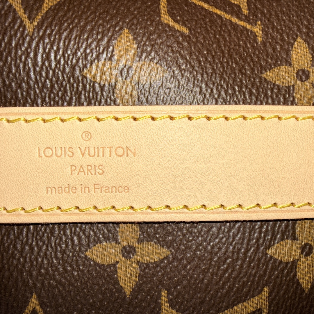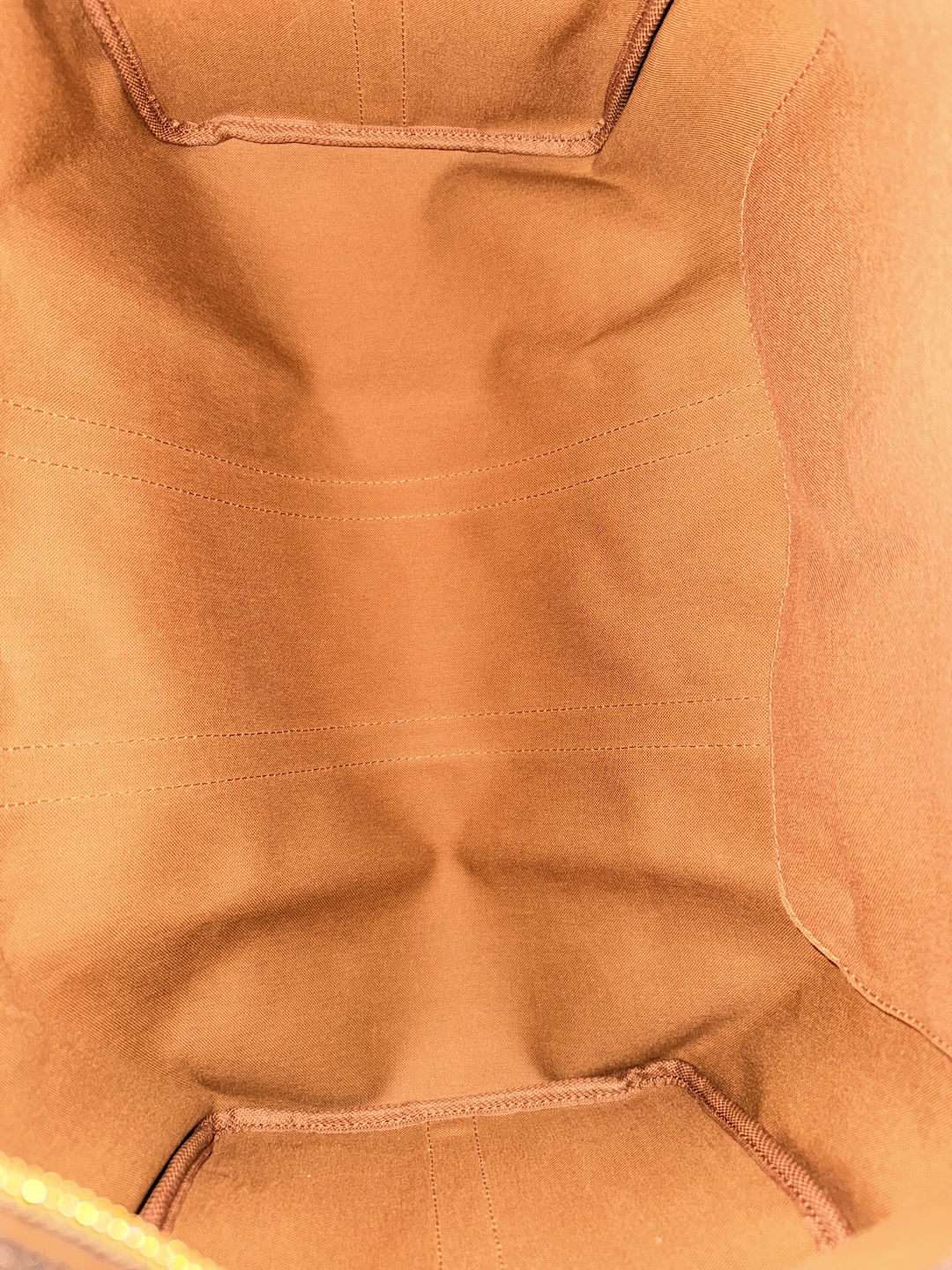 Gefertigt ist die Tasche aus strapazierfähigem Monogram Canvas und naturbelassenem Rindsleder. Die Beschläge sind aus goldfarbenem Metall gefertigt. Der Innenraum ist mit einem Textil ausgekleidet.