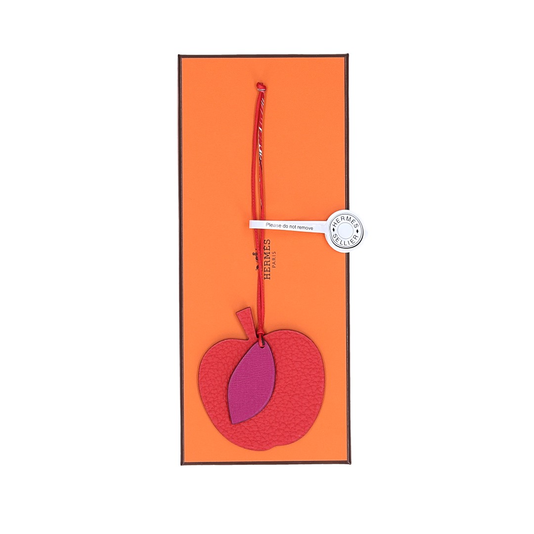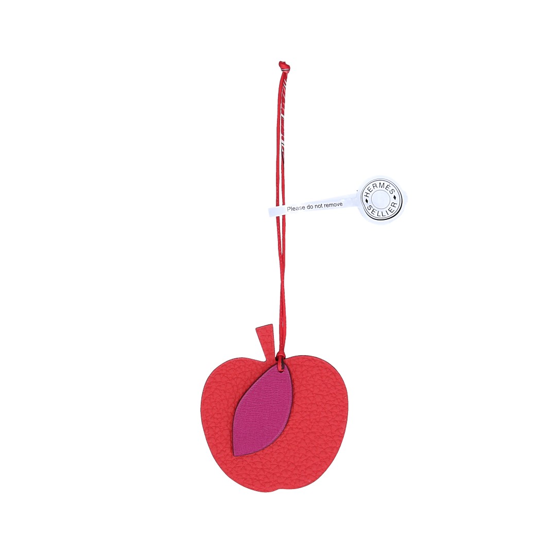 Produktinformationen "HERMÈS TASCHENACCESSOIRE ANHÄNGER 'APFEL UND BLATT' AUS LEDER IN ROT/PINK"