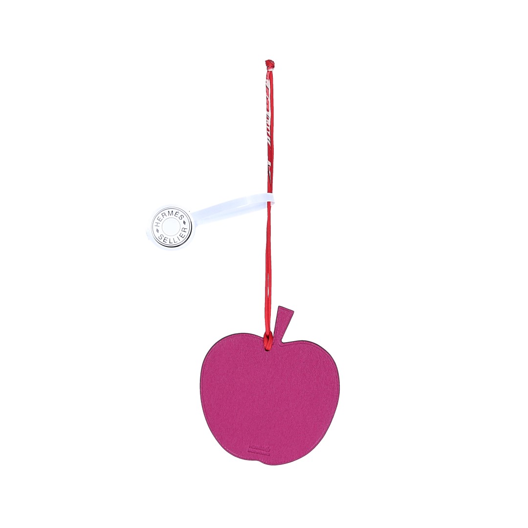 HERMÈS TASCHENACCESSOIRE ANHÄNGER 'APFEL UND BLATT' AUS LEDER IN ROT/PINK