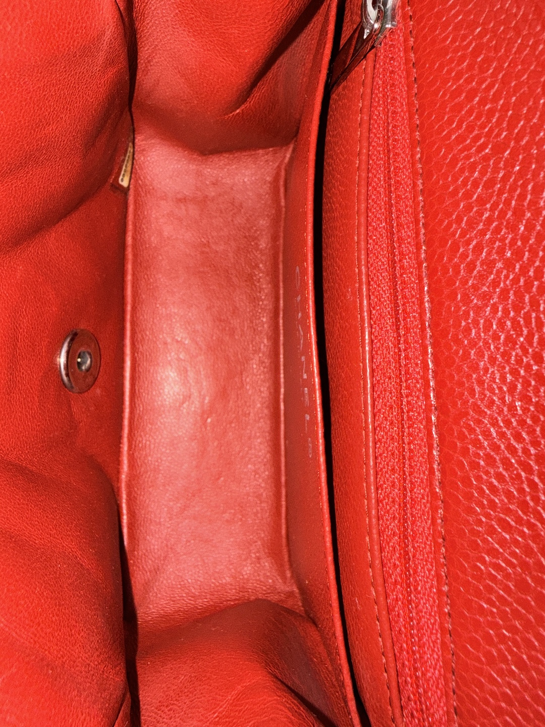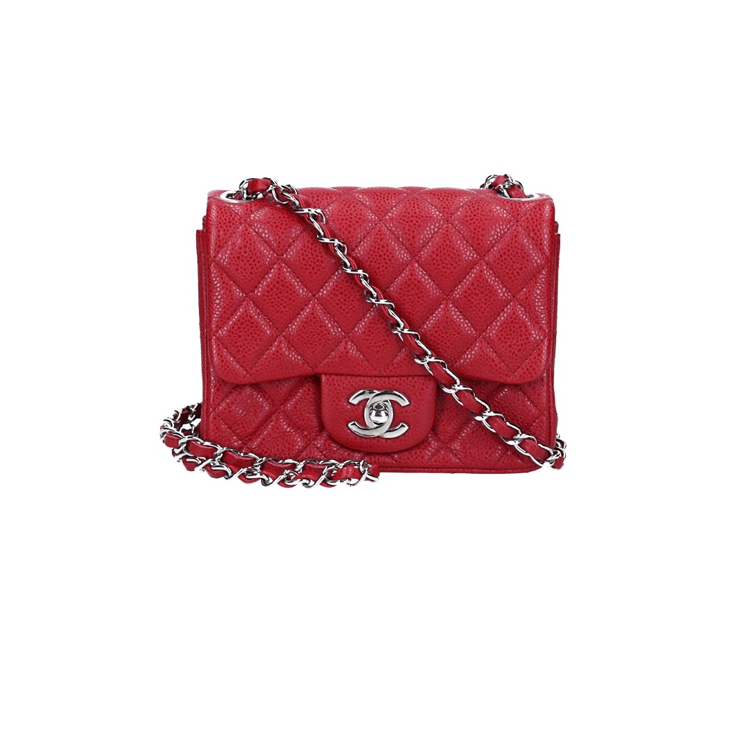 CHANEL TIMELESS FLAP HANDTASCHE (MINI SQUARE) AUS KALBSLEDER IN ROT MIT SHW (A35200)