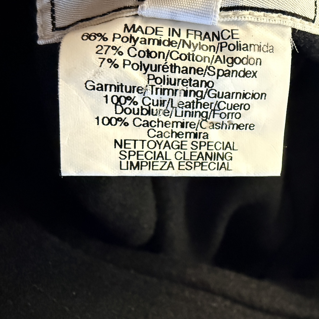 66% Nylon, 27% Baumwolle, 7% Spandex; 100% Leder, 100% Kaschmir