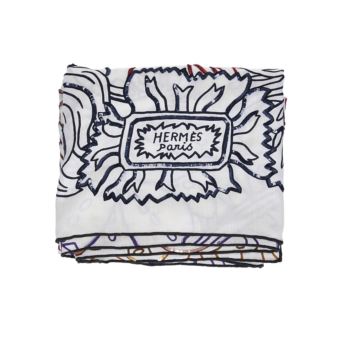 Properties "HERMÈS CASHMERE/SILK SCARF 140 x 140 CM 'CACHE CACHE' BY MICHEL DUCHENE"
