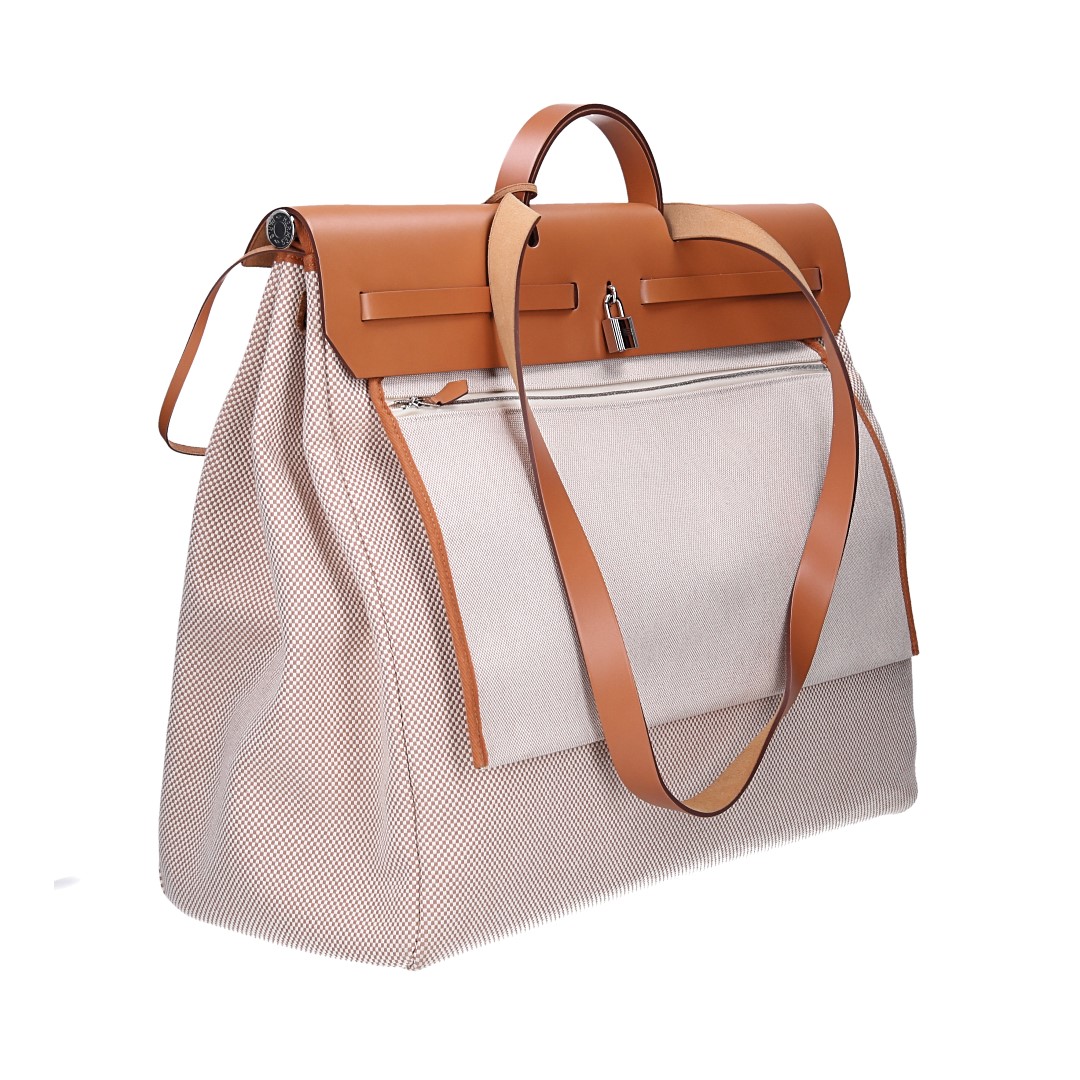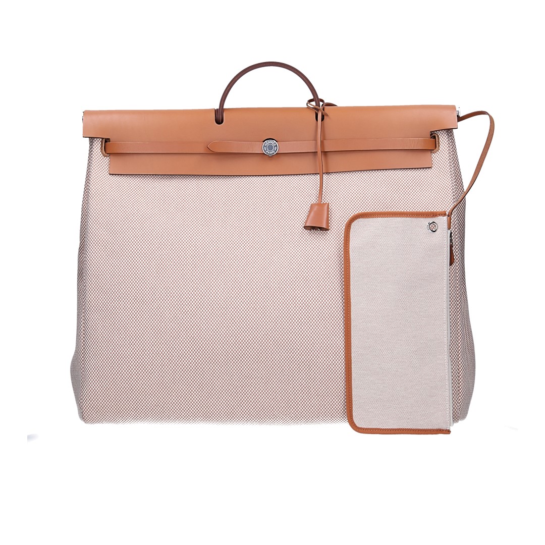 Product information "HERMÈS HERBAG RETOURNÉ CABINE 50 WEEKENDER-TASCHE AUS TOILE QUADRILLE UND HUNTER-RINDSLEDER"