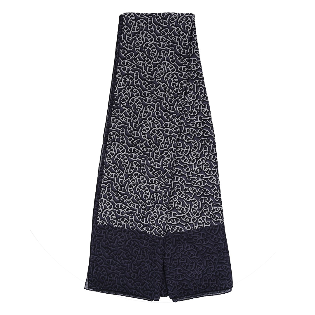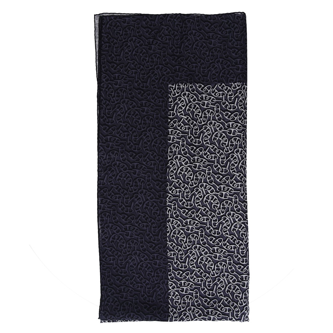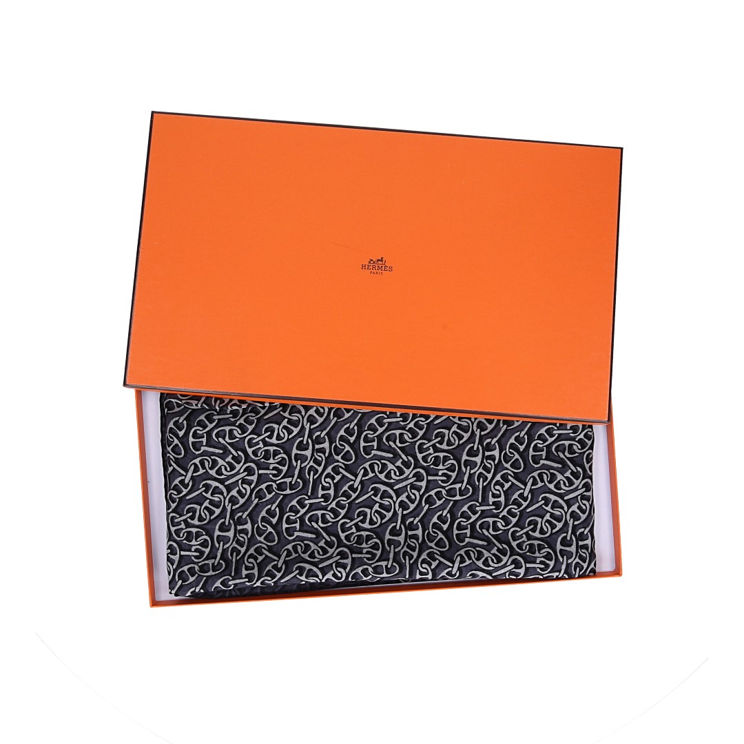 The second-hand silk scarf is in near-new condition. The product shown is the actual item for sale. Any box included in the delivery may show signs of transportation or storage.