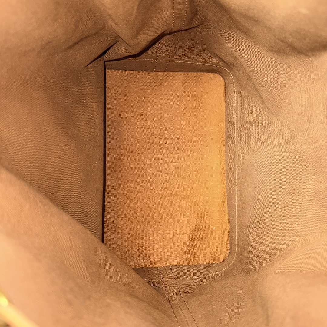 Gefertigt ist die Tasche aus strapazierfähigem Monogram Canvas und naturbelassenem Rindsleder. Goldfarbene Metallbeschläge und Details bilden bei Louis Vuitton die typische Verbindung zwischen den einzelnen Elemente. Der Innenraum ist mit einem Textil ausgekleidet.